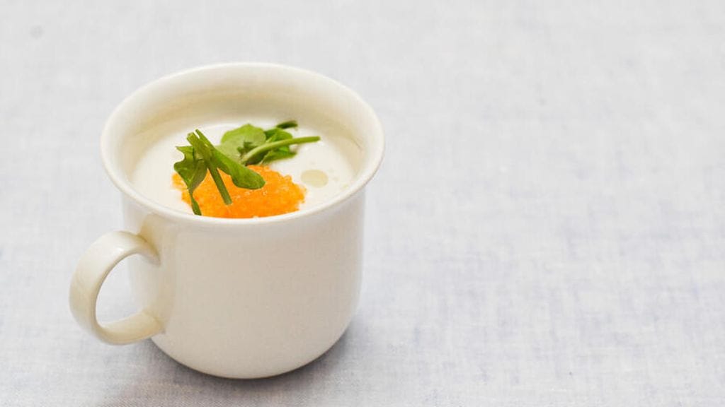 Kaada maito kattilaan niin, että kukkakaalit ja sipuli peittyy. Laita leivinpaperi keiton päälle hatuksi, jotta kukkakaali höyrystyy lempeästi. Kukkakaalia ei saa yli keittää. Lopuksi kaada keitto tehosekoittimeen ja sekoita keitto tasaisen samettiseksi. Lisää lopussa purkki smetanaa keiton joukkoon. Sekoita. Mausta suolalla ja puolikkaan sitruunan mehulla.