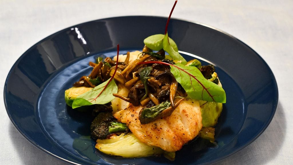 Mausta fileet suolalla ja mustapippurilla molemmin puolin ennen paistoa. Ruskista voi (25g) pannussa ja asettele fileet pannuun. Laita fileiden päälle leivinpaperi, jonka päälle toinen pannu painoksi. Tällöin kalafilee ei käpristy paistettaessa. Pasta fileet molemmin puolin niin, että ne saavat värin pintaan, mutta eivät ole täysin kypsiä.