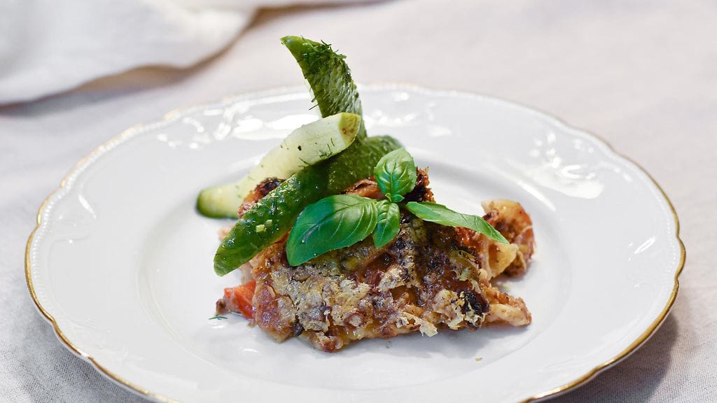 Annoksen koristeluun mummonkurkut avomaankurkuista sekä basilikaa.