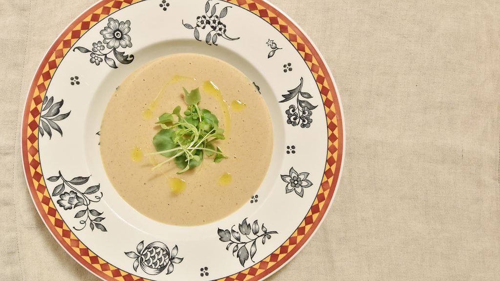 Viipaloi sipulit suikaleiksi ja tatit isoiksi lohkoiksi. Paista pitkään voissa pannulla miedolla lämmöllä. Mausta pippurilla ja suolalla. Lisää joukkoon kasvisliemi ja keitä noin 20 minuuttia. Lisää lopussa kerma sekä maito ja kuumenna. Soseuta keitto samettiseksi tehosekoittimella ja kaada annoskulhoihin. Voit koristella keiton tuoreilla yrteillä.