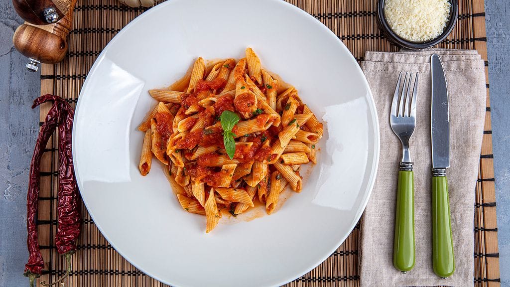 - Lisää tomaattikastikeseos kattilaan, jossa on valkosipuleista yli jäänyt valkosipuli. Lisää fenkolinsiemenet, chilihiutaleet, punaviini, mustapippuri ja suola. Kiehauta keskilämmöllä. Anna pulputa rauhassa kannen alla, alhaisella lämmöllä noin 30 minuuttia.