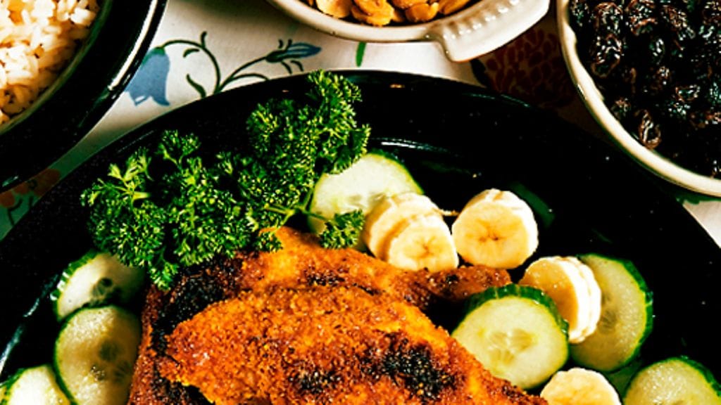 1. Kuumenna uuni 225 asteeseen. Vuoraa uunipannu foliolla. Sulata voi. Sekoita korppujauho, curry ja suola lautasella.