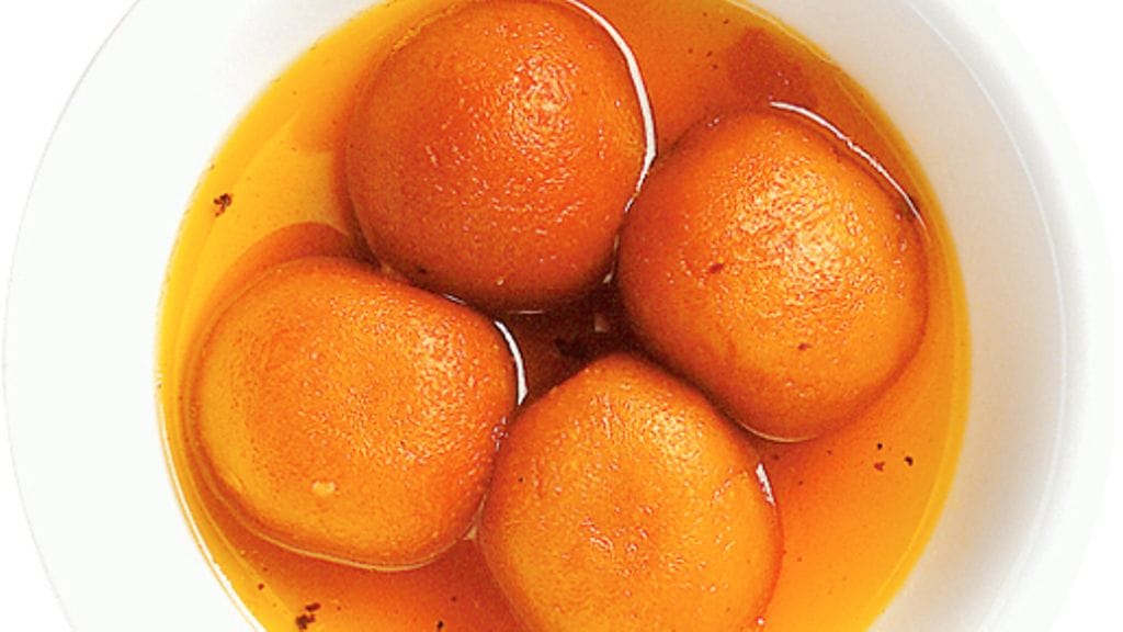 3. Friteeraus: Kuumenna öljy. Laita siihen pieni pala taikinaa. Kun pala kohoaa pintaan, se on tarpeeksi kuumaa. Laita puolet pullista öljyyn ja friteeraa keskilämmöllä 3-4 minuuttia. Nosta reikäkauhalla öljystä. Valuta muutama minuutti talouspaperilla ja laita ne sitten lämpimään sokeriliemeen. Friteeraa loput pullat. Kuumenna sokeriliemi lähes kiehuvaksi, kun kaikki pullat ovat valmiita tarjoiltavaksi.
