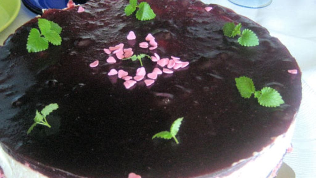 Marjoiksi sopivat mainiosti tummat marjat, joista isä pitää, tässä tehty mustaherukoilla, mutta toki myös mustamarja-aronia tai mustikka sopivat vallan mainiosti. Tee kakku jo edellisenä päivänä valmiiksi hyytymään