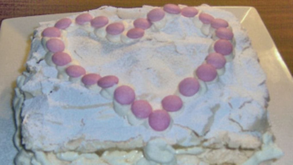 Vatkaa valkuaiset kovaksi vaahdoksi ja lisää sokeri vähitellen vatkaten. Levitä marenki kuohkeaksi kerrokseksi pohjan päälle. Laita päälle vielä mantelilastuja ja paista pohjaa 175-asteessa n. 20 minuuttia kunnes se on kauniinvaaleanruskea.