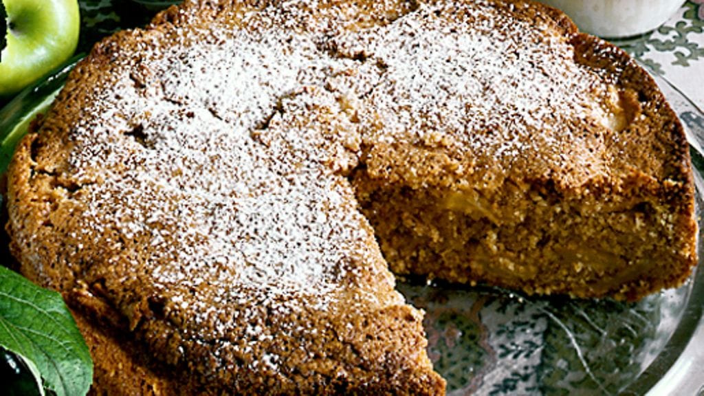 1. Kuumenna uuni 175 asteeseen. Voitele ja jauhota iso kakkuvuoka. Sekoita omena ja kaneli kulhossa.