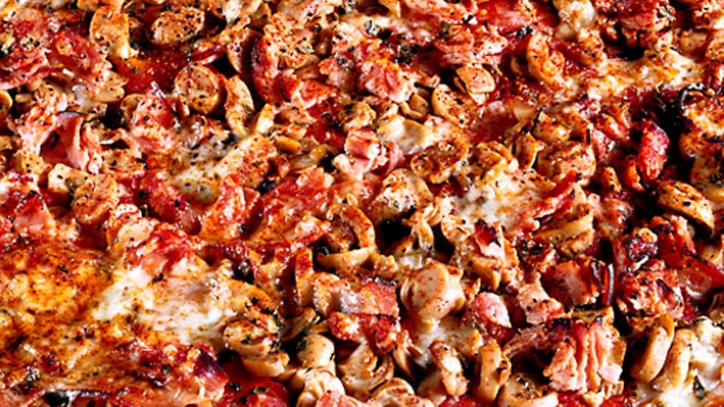 3. Kaulitse taikina ja laita se leivinpaperille pellille, penslaa öljyllä. Peitä tomaattikastikkeella. Ripottele päälle kinkkua, sieniä ja juustoa, puuteroi paprikalla. Paista uunin keskitasolla n. 20 minuuttia.