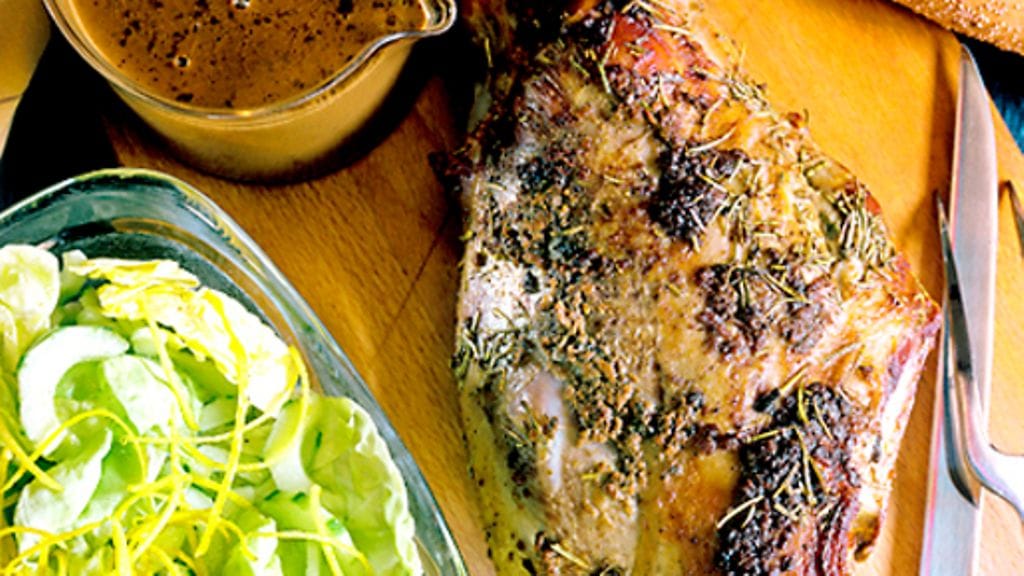 3. Lämmitä viini ja viinietikka kasarissa ja valele sillä paistia silloin tällöin. Liha on kypsää, kun mittari näyttää 68-70 astetta.