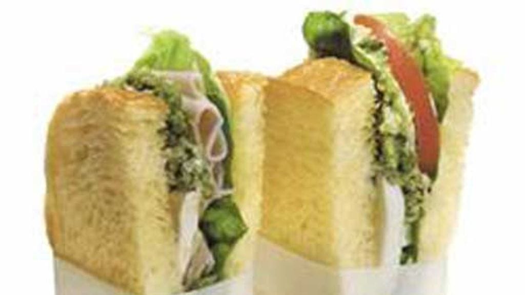 Sekoita pestokastike ja tuorejuusto keskenään. Levitä kahdelle leipäviipaleelle.