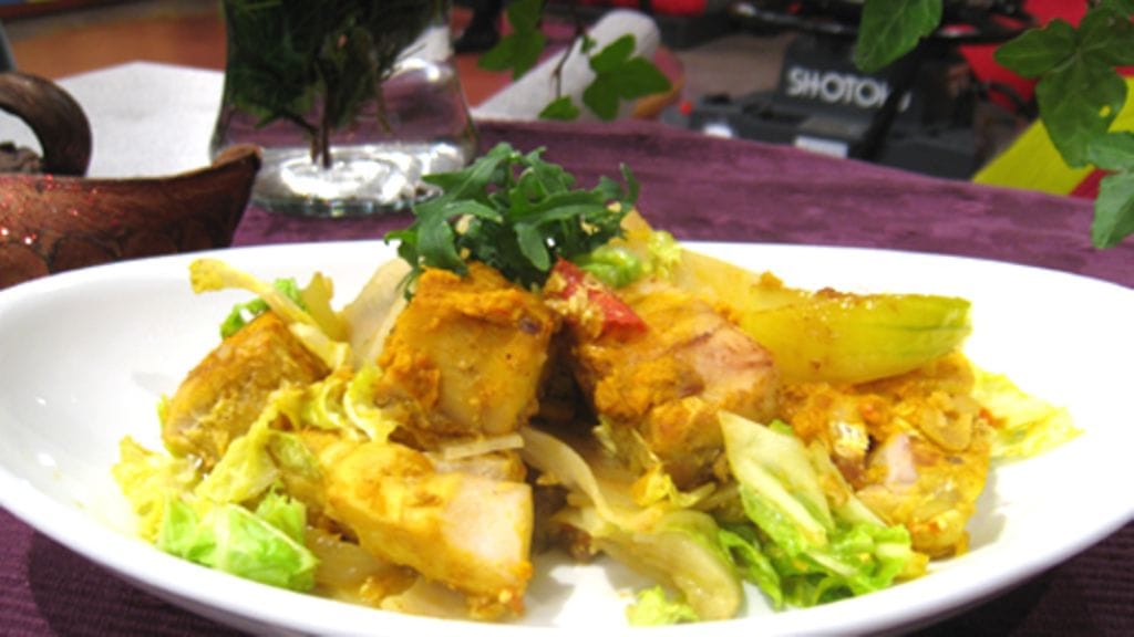 Paista kaikki kalojen pinnat ja lisää lohkotut sienet ja sipuli pannulle. Mausta currylla, silputulla inkiväärillä, valkosipulilla ja sitruunan mehulla. Anna hautua kunnes kala on kypsää.