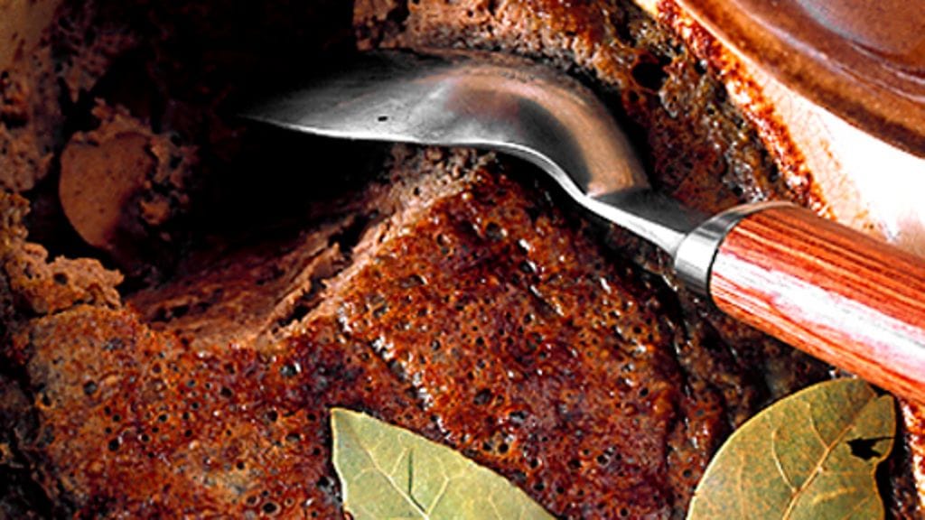 4. Soseuta loput kananmaksasta, naudanmaksa sekä sipuli hienoksi taikinaksi. Muussaa anjovikset ja lisää taikinaan. Työstä mukaan muut ainekset paitsi laakerinlehdet.