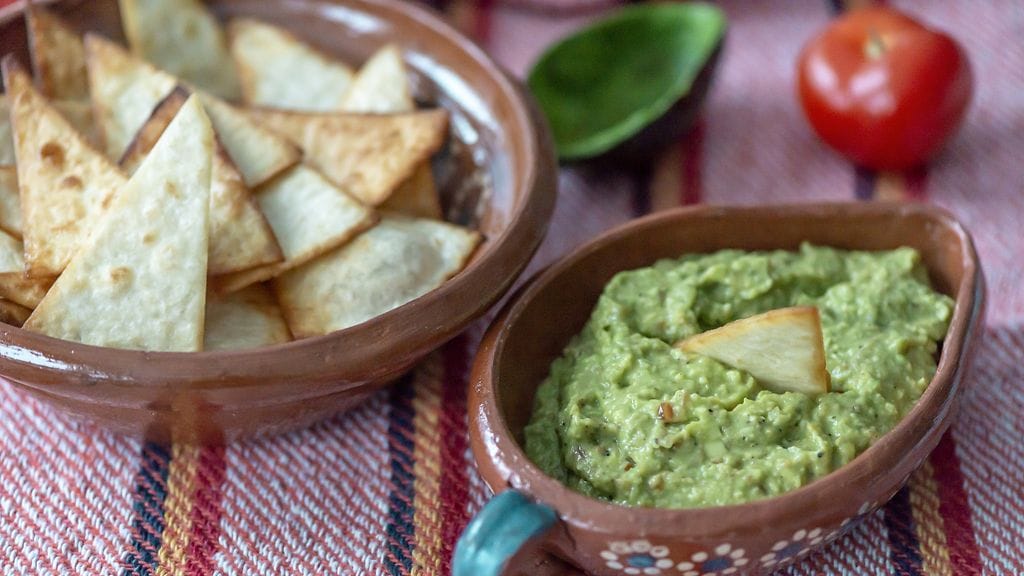 Nachot valmistetaan valmiista tortilloista. Leikkaa tortillat ohuiksi kolmion mallisiksi paloiksi.