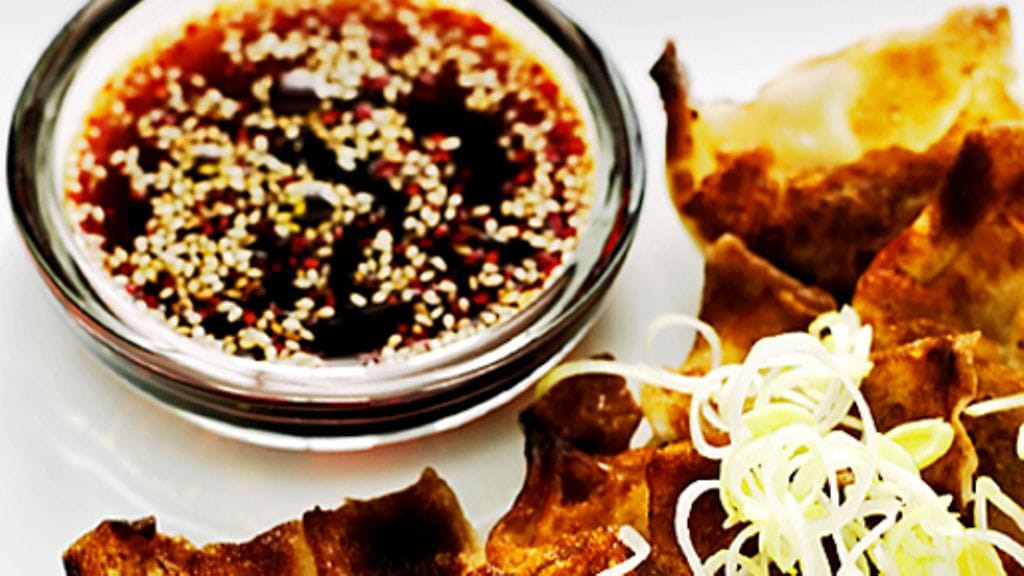 1. Ponzudippi: Purista limestä mehu. Halkaise chili pituussuuntaan, poista siemenet ja hienonna hedelmäliha. Sekoita soija, limemehu, mirin ja seesamiöljy, lisää chili ja seesaminsiemenet.