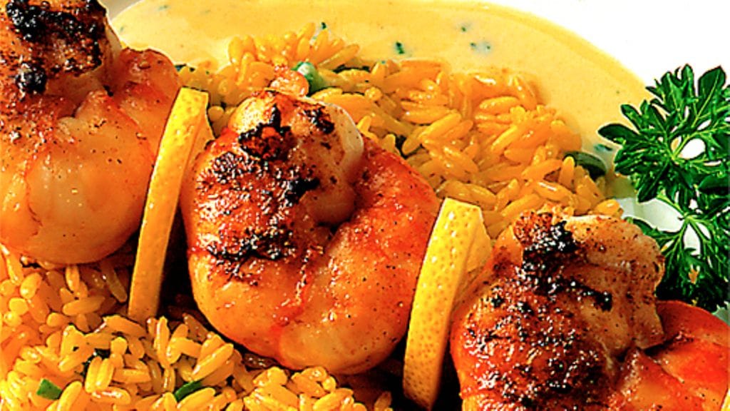 1. Kuori katkaravut. Sekoita sitruunamehu, öljy, suola ja pippuri kulhossa, lisää katkaravut ja marinoi pari tuntia. Pujota katkaravut vartaisiin, joka katkaravun väliin tulee pieni sitruunaviipale.