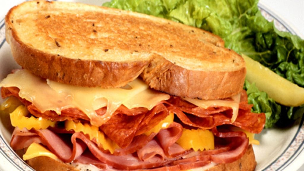 2. Paahda leipäviipaleet ja voitele toinen maustetulla tuorejuustolla. Laita päälle kinkkua, porkkanaa, salamia ja emmentaljuustoa. Laita päälle toinen leipäviipale ja purista kevyesti yhteen.