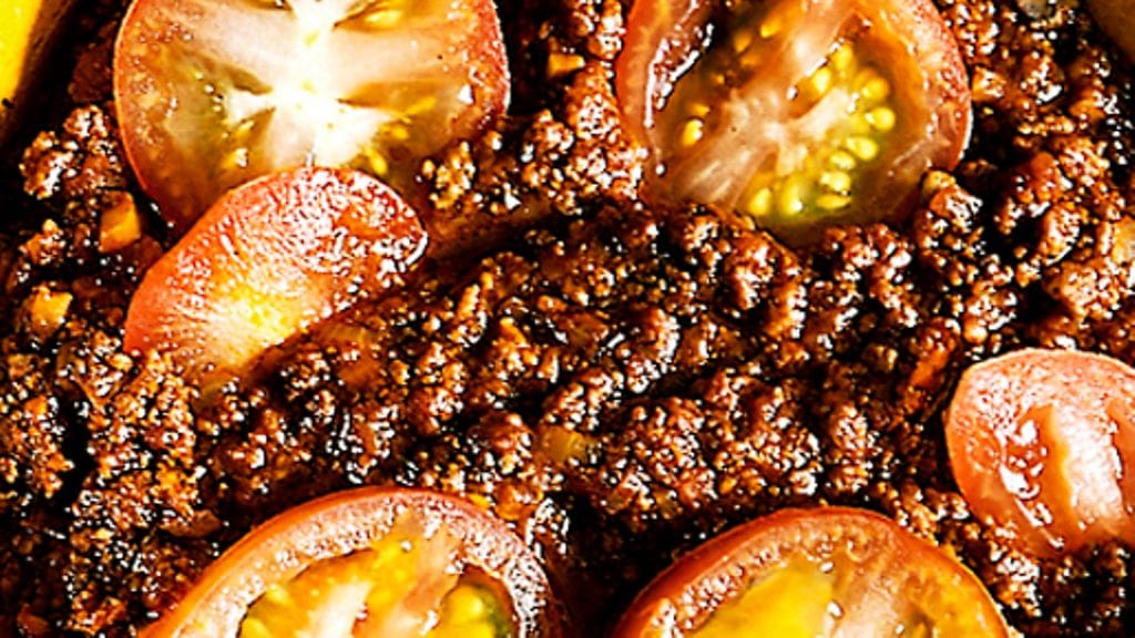 1. Paista jauheliha pannulla pienissä erissä ja murentaen. Siirrä pataan. Leikkaa sipuli kuutioiksi.