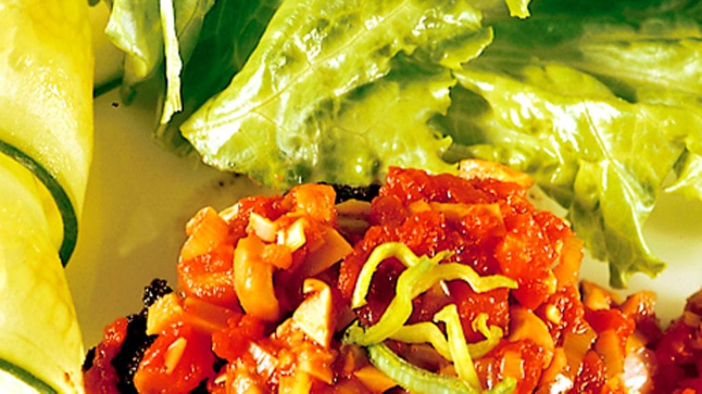 3. Hienonna sienet ja suikaloi purjo, ruskista ne öljyssä kattilassa. Lisää tomaattimurska, mausta. Anna kiehua hiljalleen samalla kun paistat pihvit. Tarjoile seos pihvien kanssa.