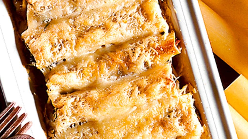3. Kuumenna uuni 200 asteeseen. Sulata pinaattisilppu ja purista pois nestettä. Sekoita pinaatti sekä 1/3 juustoraasteesta jauhelihaseokseen. Täytä pastaputket tällä seoksella ja aseta ne voideltuun uunivuokaan tiheästi. Ripota päälle loppu juustoraaste ja muutama nokare voita ja paista uunin keskitasolla 30 minuuttia.