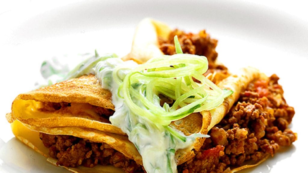3. Paista pienehköjä, ohuita lettuja. Nosta jokaiselle letulle täytettä, pyöritä rullalle ja tarjoile lämpiminä.