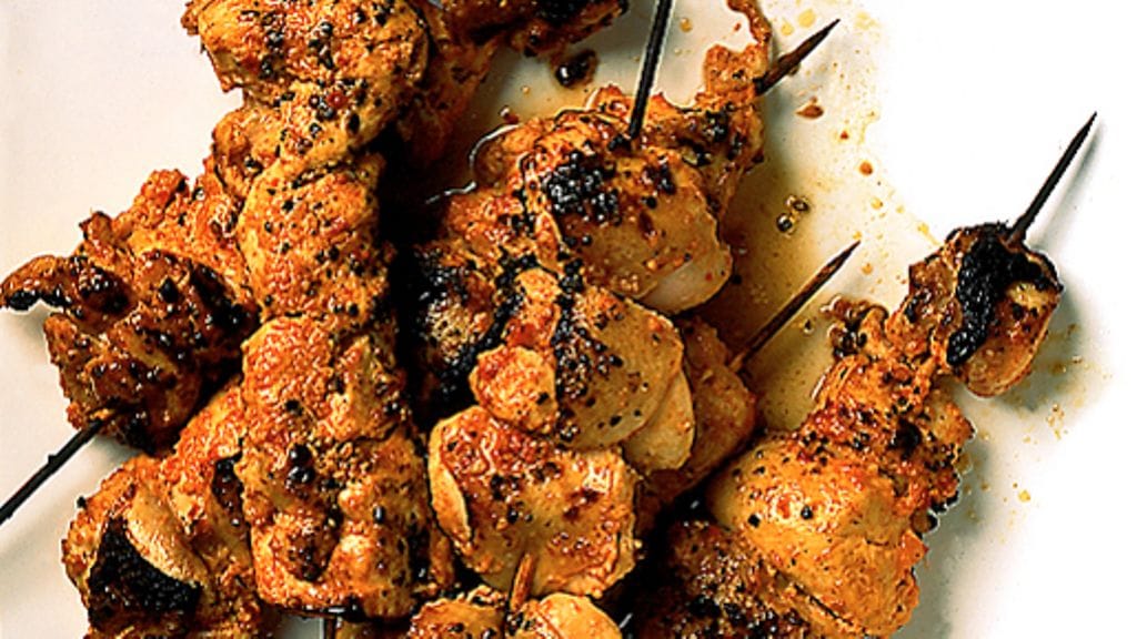 3. Pujota lihapalat grillivartaisiin (jos käytät puisia vartaita, liota ne ensin vedessä) ja penslaa marinadilla. Grillaa vartaita 5-8 minuuttia, voitele niitä marinadilla useita kertoja grillaamisen aikana. Tarjoile vastakeitettyä riisiä vartaiden kera, ja valuta vartaille kastiketta juuri grillistä otettuina.