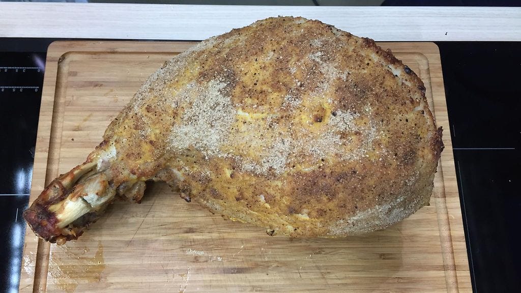 1. Leikkaa kinkusta pois kamara, mutta jätä vähän rasvaa pinnalle. Kuivaa kinkun pinta puhtaalla pyyhkeellä tai talouspaperilla, niin kuorrutus tarttuu paremmin.