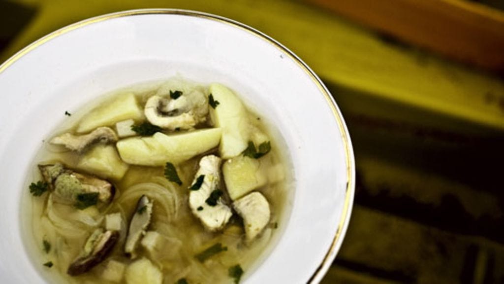 Lisää perunat ja suola liemeen ja anna kiehua n. 5 minuuttia. Lisää sipuli. Lisää sienet ja ahvenfileet liemeen, kun perunat ovat kiehuneet n. 10 minuuttia. Odota, että loput aineet ovat kypsiä (n. 5 min). Tarkista suola. Lisää pippuria myllystä ja hieman sitruunamehua, jos kaipaat keittoon hapokkuutta. Sitruunan mehu terävöittää myös muita makuja.
