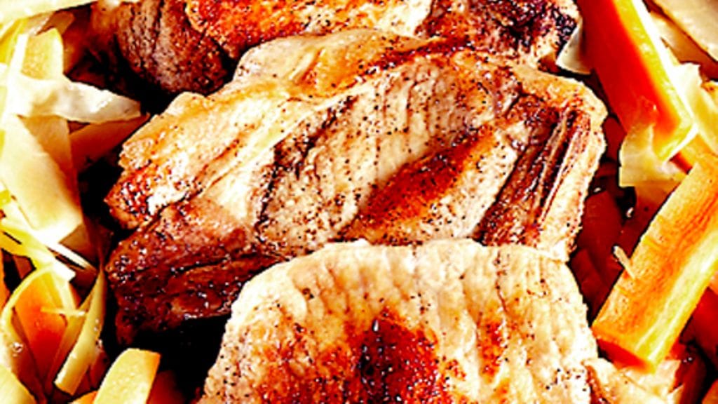 3. Nosta kyljykset vihannesten päälle ja keitä hiljaa kannen alla, kunnes vihannekset ovat kypsiä.