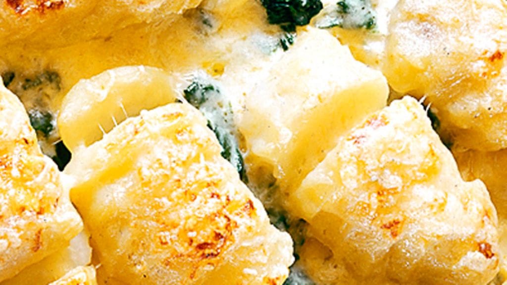 5. Kaada kastike perunoille ja ripottele päälle loput juustosta. Gratinoi uunissa kunnes juusto on kauniin väristä.