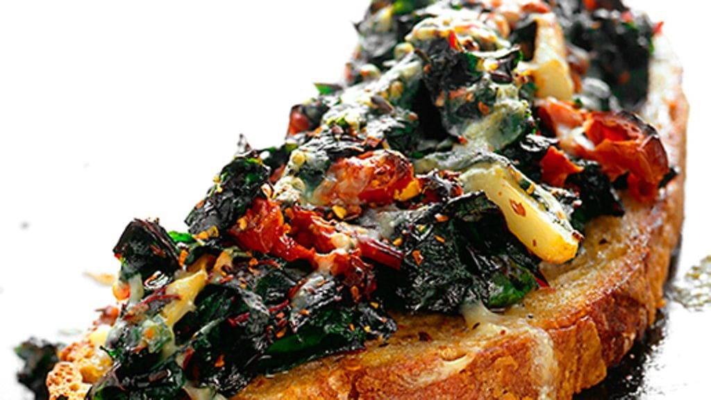 1. Kuumenna uuni 275 asteeseen. Revi pinaatinlehdet pienemmiksi ja leikkaa pois paksut lehtiruodit. Kuullota pinaatti voissa, suolaa ja pippuroi. Leikkaa aurinkokuivatut tomaatit pieniksi paloiksi ja viipaloi vesikastanjat.