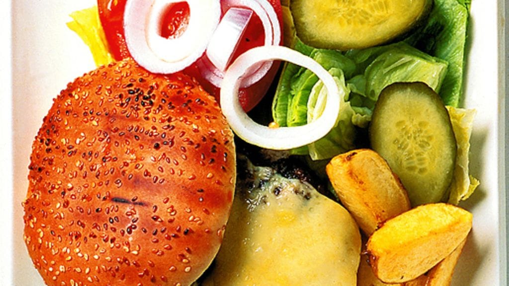 3. Aseta pihvit lämpimille leiville. Tarjoile lisänä suolakurkkua, tomaattiviipaleita, sipulirenkaita, salaattia sekä ranskalaisia tai lohkoperunoita.