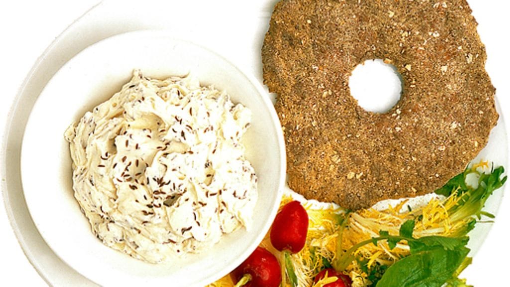 1. Leikkaa juusto kuutioiksi ja murenna homejuusto. Pane juustokuutiot, suola ja mausteet tai yrtit yleiskoneeseen tai tehosekoittimeen ja sekoita suurimalla teholla 10 sekuntia.