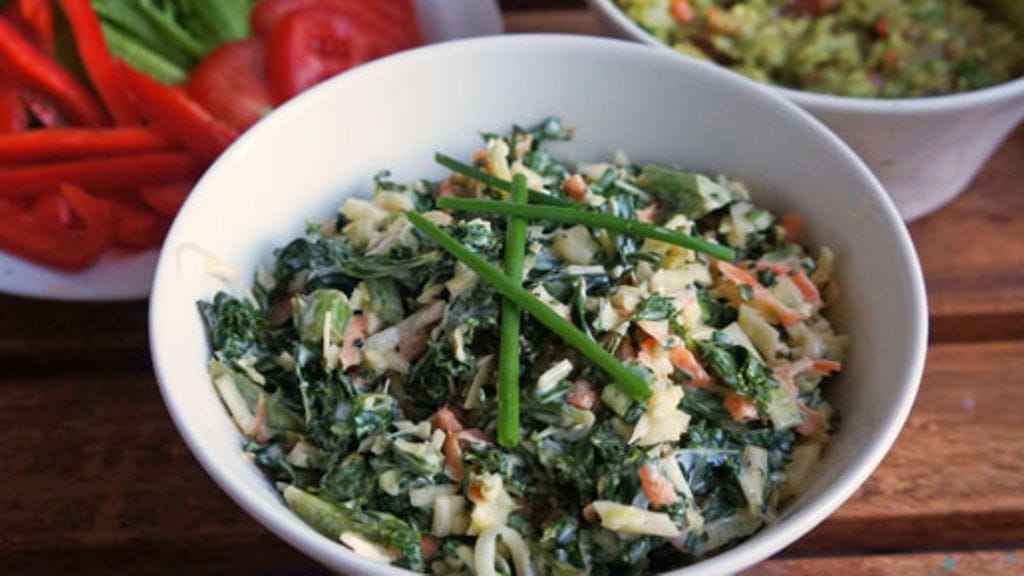 Hienonna kevätsipuli ja lehtipersilja ja yhdistä kaikki raasteet aiolin kanssa herkulliseksi ja rapeaksi lisukesalaatiksi.