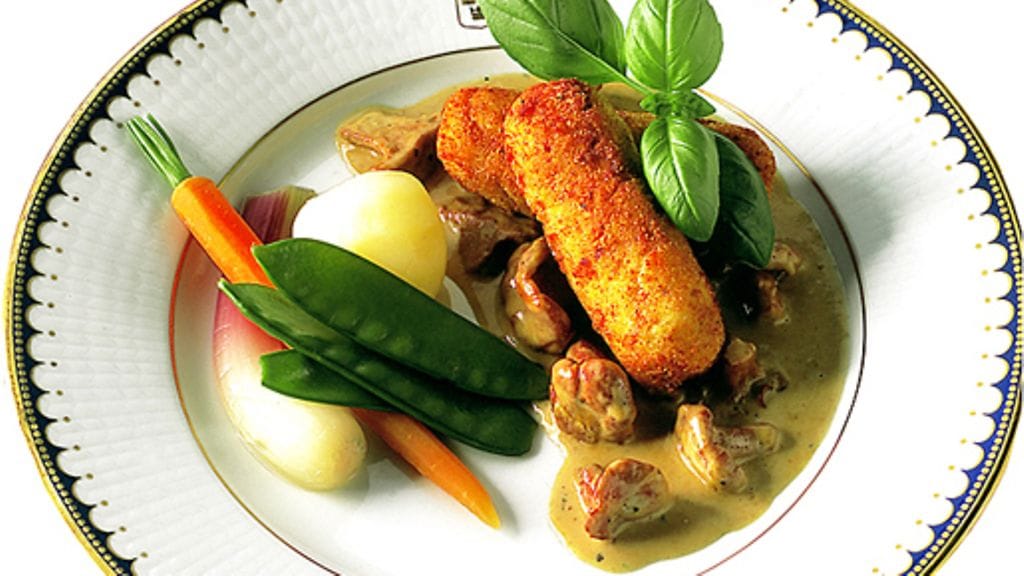 1. Paista sienet. Kuumenna kaksi desiä kermaa kattilassa. Kuullota suurukseksi voita ja jauhoja toisessa kattilassa. Nosta suurus pois liedeltä ja lisää lämmin kerma joukkoon. Keitä hiljalleen muutaman minuutin ajan. Seos saa olla melko paksua. Jauha liha hienoksi tehosekoittimessa. Hienonna paistetut sienet. Sekoita liha, sienihakkelus ja jauho-kermaseos keskenään. Sekoita joukkoon keltuaiset, suola ja pippuri ja kaada sitten taikina voideltuun vuokaan. Voitele pinta voisulalla. Anna jäähtyä.