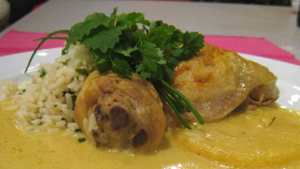 Kuullota curry pannulla ja kaada kookosmaito ja säilykkeen ananasmehu mukaan. Kaada maito kattilaan ja huuhtaise pannu vedellä. Kaada myös huuhteluvesi kanojen päälle. Mausta chilipalalla ja suolalla ja hauduta ainakin kolme varttia. Tarjoa kana-ananaspata yrttiriisin kanssa.