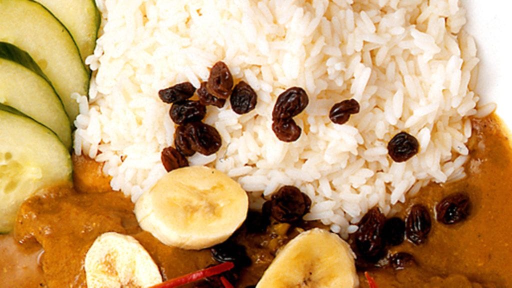 2. Kuori sipuli ja peruna ja silppua ne karkeasti. Kuullota padassa sipuli pehmeäksi voissa yhdessä curryn, kajennen ja kanelitangon kanssa. Varo polttamasta. Purista joukkoon valkosipulinkynnet. Lisää broilerinpalat ja kaada joukkoon vihanneslientä ja kookosmaitoa, niin että lihat peittyvät. Suolaa kevyesti ja lisää perunasilppu, joka saa kiehua rikki ja samalla suurustaa kastiketta. Keitä 35 minuuttia, tai kunnes liha on mureaa.