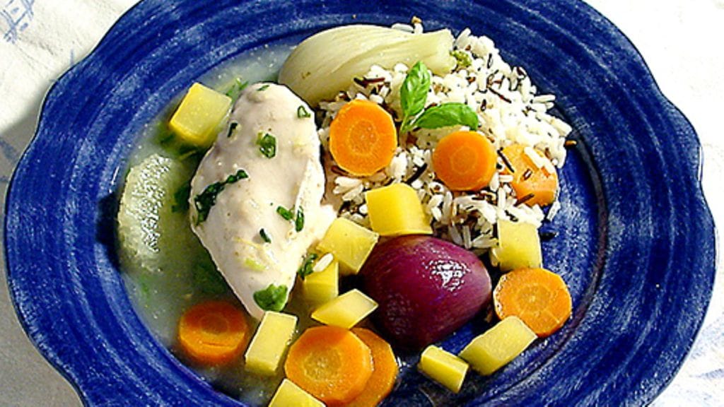 1. Kuori ja leikkaa porkkana ja lanttu aika pieniksi paloiksi. Halkaise fenkoli, leikkaa pois kova osa ja paloittele. Kuori ja halkaise sipulit, kuori valkosipulinkynnet. Kuumenna 6 dl vettä kiehuvaksi porkkanan, lantun, fenkolin, sipulin, valkosipulin, suolan ja pippurin kera. Lisää kanafileet kiehuvaan veteen. Anna kiehua hiljalleen kannen alla 15 minuuttia. Nosta kanat liemestä, etteivät ne sitkisty.