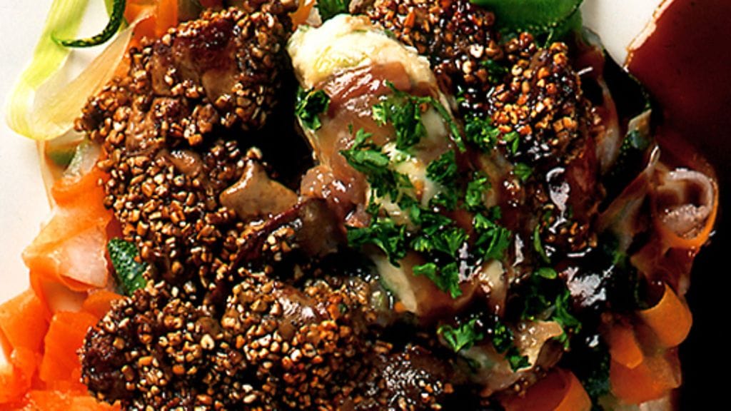 3. Puhdista broilerinmaksat, kuivaa ne ja mausta suolalla ja pippurilla. Sirottele niiden päälle vehnäjauhoa. Paista maksat voissa, alenna lämpöä ja hauduta vielä 8-10 minuuttia. Tarjoile heti keitettyjen vihannesten punaviinikastikkeen ja sardellivoin kanssa.