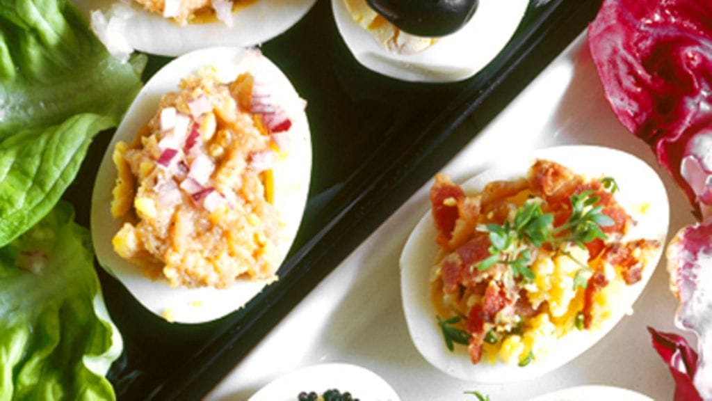 2. Täyte 1: Punaista ja mustaa mätiä, hienonnettua kevätsipulia.