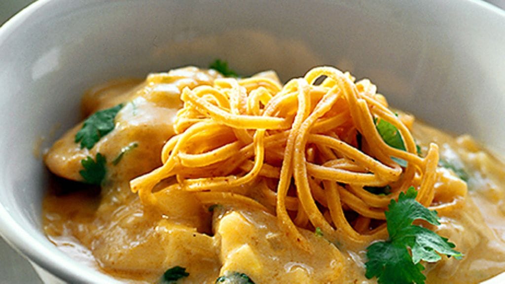 1. Kiehauta nuudelien vesi, lisää kurkuma ja keitä sitten nuudelit pakkauksen ohjeen mukaan.