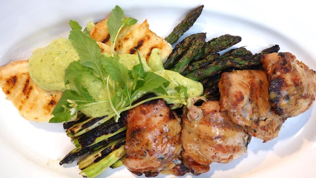 Kuori parsa, pyöräytä öljyssä. Grillaa kunnes parsat ovat kauniin värisiä.