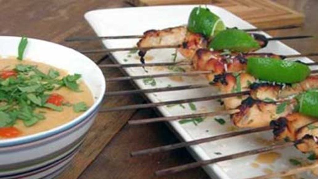 Leikkaa kanafileet pituussuunnassa kolmeen pitkään suikaleeseen ja laita marinadiin vaikka jo edellisenä iltana. Kun kanat ovat aikansa levänneet marinadissa, pujota jokainen suikale omaan varrastikkuunsa. Laita uuniin 200 astetta ja grillivastukset päälle, niin kanat saavat hyvän värin. Kanat kypsyvät uunissa noin 20 minuutissa.