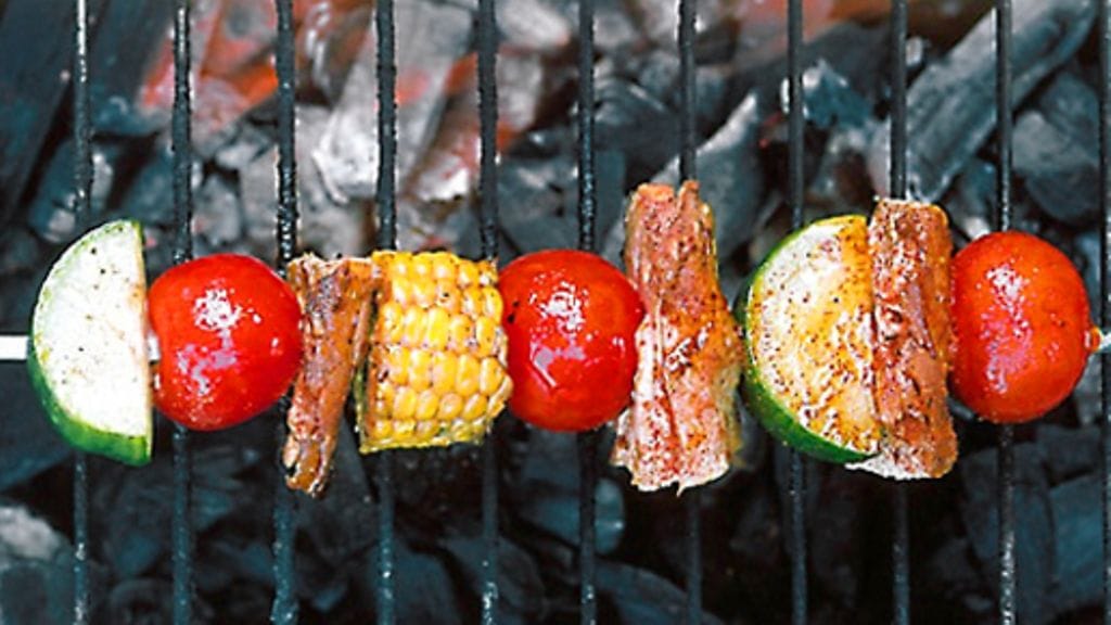4. Kääntele vartaita hiilloksella kunnes kana on läpikypsää. Penslaa pari kertaa marinadilla.