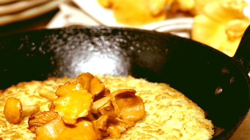 3. Harjaa kantarellit hyvin ja laita ne kylmälle paistinpannulle. Lisää lämpöä ja anna kosteuden haihtua pois sienistä. Laita sitten pannulle voita ja paista kantarellit. Ripauta suolaa ja kaada kantarellit röstin päälle. Tarjoile heti.