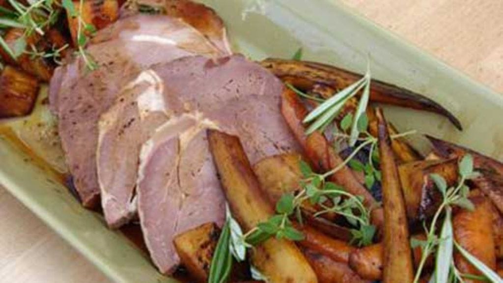 Paista juurekset pannulla voin ja hunajan kera. Lisää joukkoon hiukan vettä. Mausta mustapippurilla, suolalla ja yrteillä maun mukaan. Tarjoile maukkaan lampaanpaistin kera. Koristele annos esimerkiksi rosmariinilla.