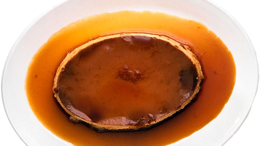 3. Kaada taikina vuokaan, johon olet levittänyt karamellikuorrutuksen, ja paista vanukasta uunissa 30-40 minuuttia vesihauteessa, kunnes se on juuri ja juuri hyytynyt. Jäähdytä vuoka. Irrota vanukkaan reunat vuoasta terävällä veitsellä juuri ennen kumoamista.