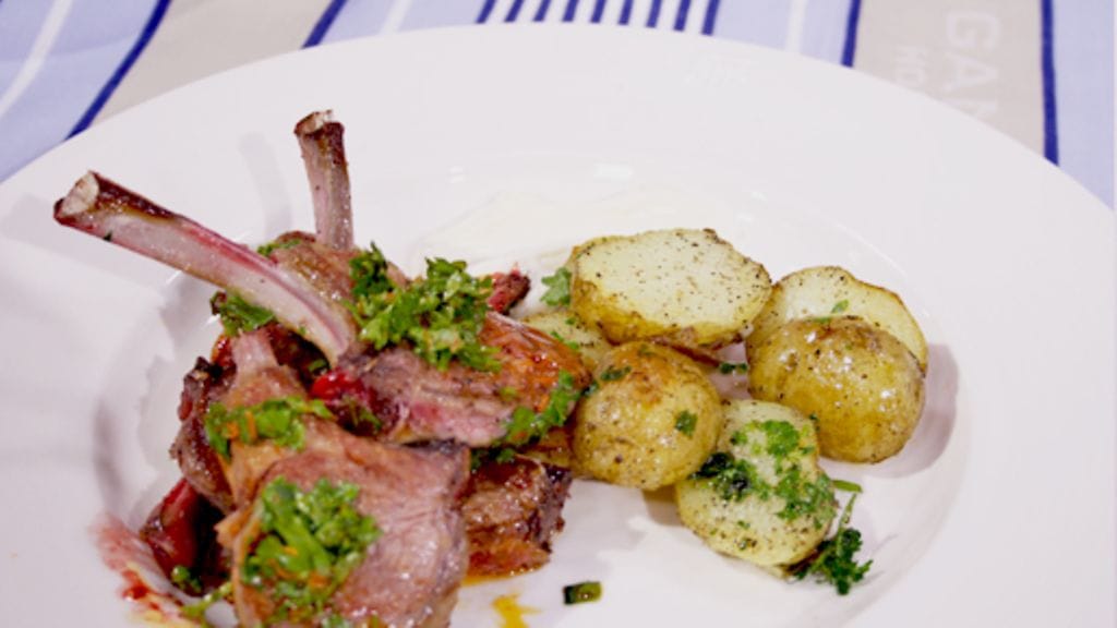 Mausta kareet suolalla ja pippurilla. Paista öljyssä timjamin oksien ja kahden kämmenellä murskatun valkosipulinkynnen kanssa kauniin värisiksi. Jatka kypsentämistä 100-asteisessa uunissa kunnes lihan sisälämpö on 47-50 astetta.