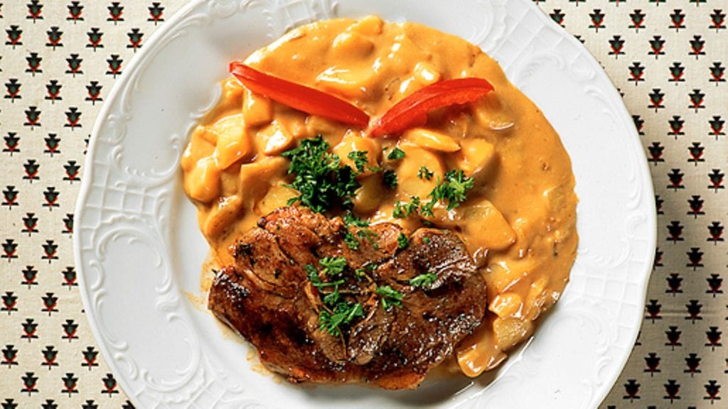 3. Tarjoilu: Pane kyljykset lautasille. Annostele sipuliperunat kyljysten viereen ja ripottele päälle hienonnettua persiljaa ja paprikasuikaleita.