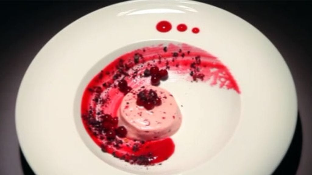 5. Yhdistä vaahdot ja lopuksi karpalopyree. Laita laakeaan astiaan ja pakastimeen 2 tunniksi.
