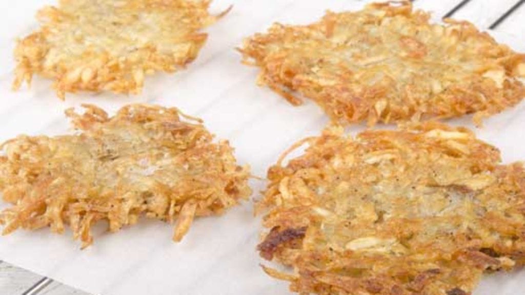3. Paista kunnes perunat ovat puolipehmeitä, ripottele päälle juusto ja litistä kakuksi.