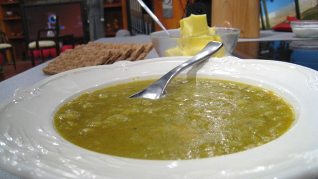 Keitä ainakin kaksi tuntia, välillä sekoittaen, kunnes herneet ovat pehmenneet ja soseutuneet. Mausta soppa sinapilla ja meiramilla ja tarjoa sen kanssa näkkileipää.